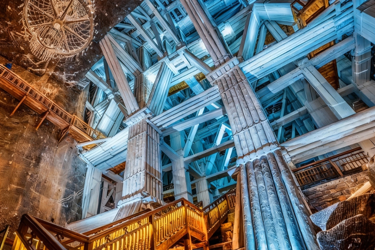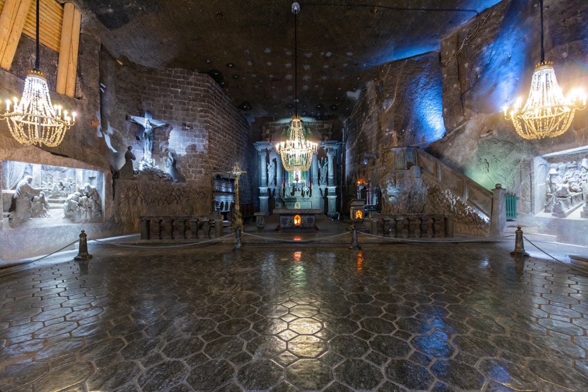 Aunque la estructura de soporte de toda la construcción es de madera, la mayoría de los túneles, junto con paredes, suelos, techos y las hermosas decoraciones de cristal y estatuas, fueron tallados únicamente en sal. Merece especialmente la pena ver la Capilla de Santa Kinga.